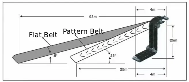 Features: It can continuously convey various bulk materials at any inclination angle of 0-90 degrees, from a small particle size to a large particle size of 400mm, and the conveying volume is from 1 cubic meter/hour to 6000 cubic meters/hour. It has the characteristics of large conveying inclination, wide application range, small footprint, no transfer point, reduced civil construction investment, low maintenance cost, large conveying capacity, etc., which solves the conveying angle that cannot be achieved by ordinary conveyor belts or patterned conveyor belts.